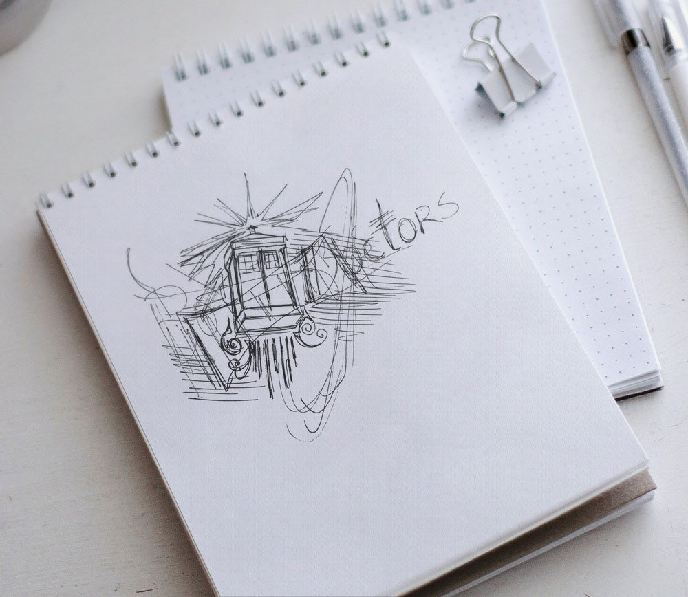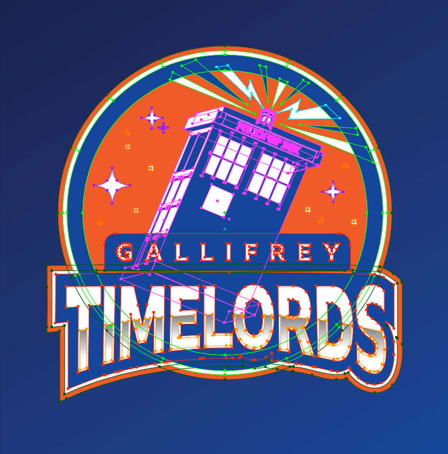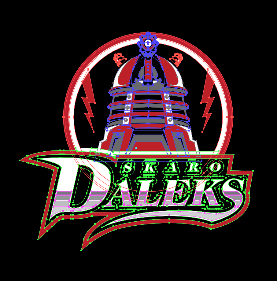 'Galifrey Time Lords' and 'Skaro Daleks'. Concept sketch to Illustrator file and physical print.